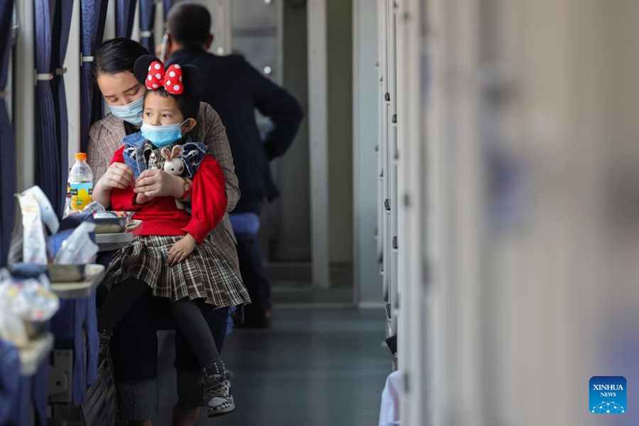 Passengers take a rest aboard a slow train bound for Hotan in northwest China's Xinjiang Uygur Autonomous Region, April 27, 2022.