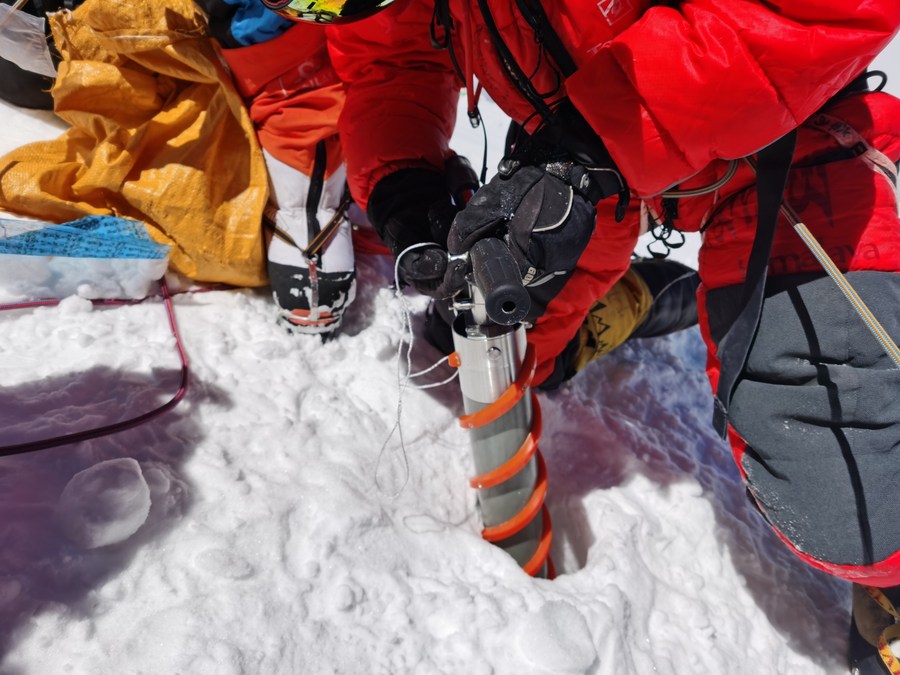 Also on Wednesday, 13 members of the expedition team reached the summit of Mount Qomolangma. At the summit, the squad measured the thickness of the ice and snow using high-accuracy radar for the first time, and collected samples for further research.