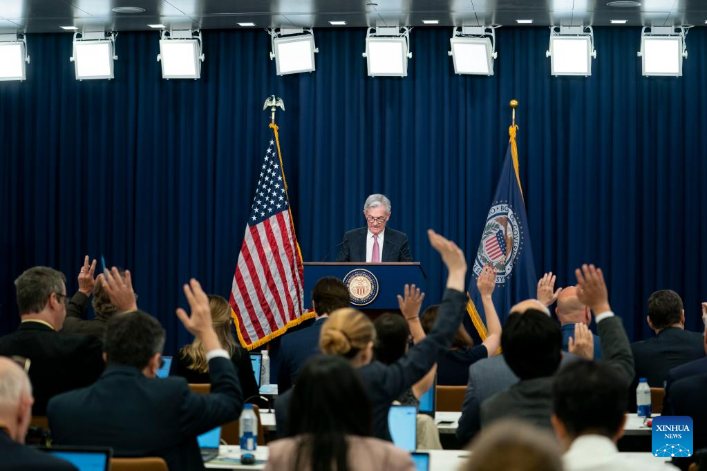 U.S. Federal Reserve Chair Jerome Powell attends a press conference in Washington, D.C., the United States, on May 4, 2022. The U.S. Federal Reserve on Wednesday raised its benchmark interest rate by a half percentage point, marking the sharpest rate hike since 2000, as it takes more aggressive steps to rein in the highest inflation in four decades. (Xinhua/Liu Jie)