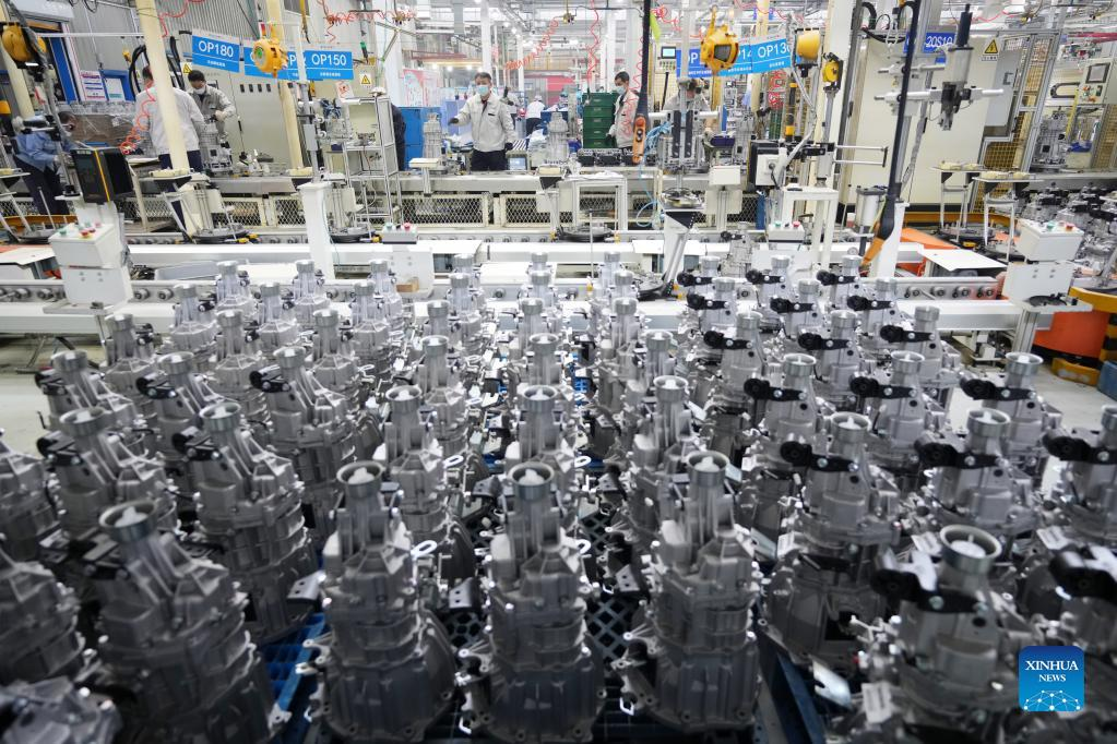 Workers are busy in a workshop of Dongan Auto Engine Co., Ltd. in Harbin, northeast China's Heilongjiang Province, April 15, 2022. The local economy in Heilongjiang continued to recover amid stronger growth momentum in the first quarter. Heilongjiang's value-added industrial output, an important economic indicator, went up 8.1 percent year on year in the first quarter of this year. (Xinhua/Wang Jianwei)