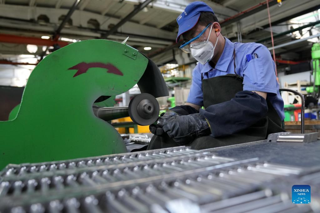 A worker is busy in a workshop of Harbin Electric Machinery Company Ltd. of Harbin Electric Corporation in Harbin, northeast China's Heilongjiang Province, May 1, 2022. The local economy in Heilongjiang continued to recover amid stronger growth momentum in the first quarter. Heilongjiang's value-added industrial output, an important economic indicator, went up 8.1 percent year on year in the first quarter of this year. (Xinhua/Xie Jianfei)