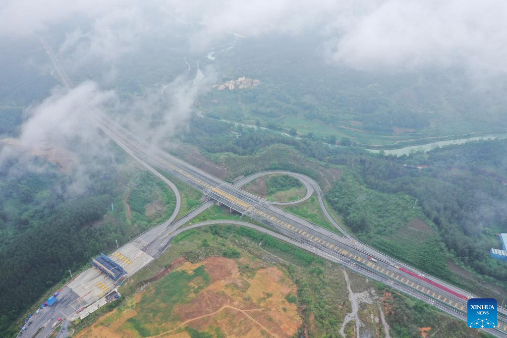 Aerial photo shows roads in Bama Yao Autonomous County, south China's Guangxi Zhuang Autonomous Region, May 8, 2022. Donglan County, Bama Yao Autonomous County and Fengshan County of Hechi City are located in karst mountains in northwestern Guangxi.