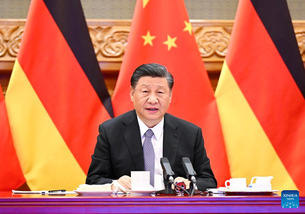 BEIJING, May 9 (Xinhua) -- Chinese President Xi Jinping on Monday met via video link with German Chancellor Olaf Scholz.