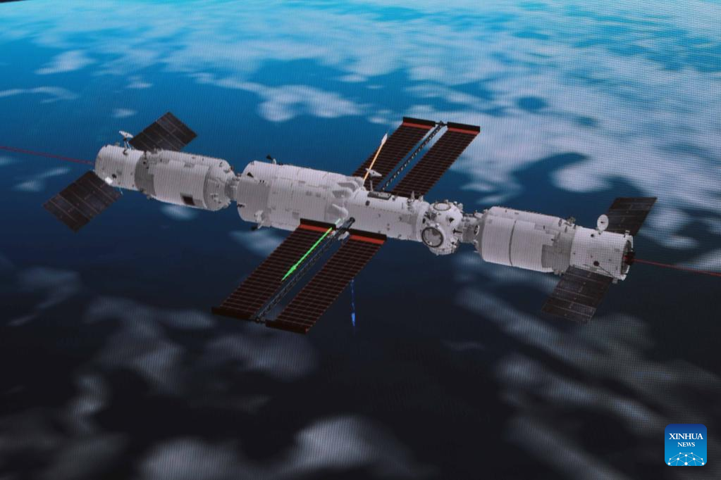 BEIJING, May 10 (Xinhua) -- China's cargo spacecraft Tianzhou-4, carrying supplies for the upcoming Shenzhou-14 crewed mission, successfully docked with the combination of the space station core module Tianhe and the Tianzhou-3 cargo craft on Tuesday, according to the China Manned Space Agency (CMSA).