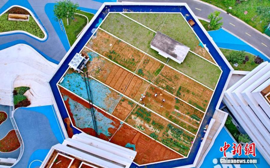 Students cultivate vegetables in the rooftop gardens at a middle school in Ganzhou, east China's Jiangxi Province, May 9, 2022. (Photo: China News Service/Zhu Haipeng)