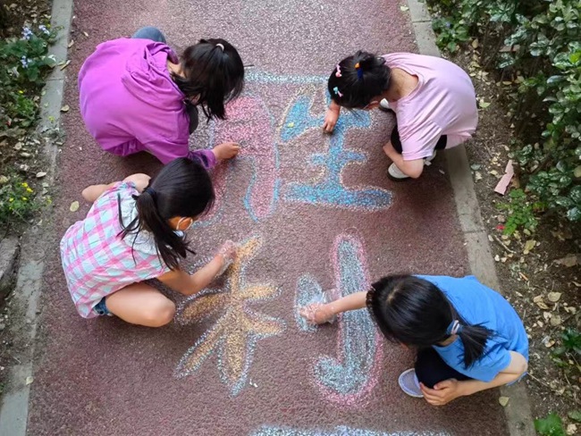 “Lining up to wait for nucleic acid testing is boring. When we saw some kids drawing pictures on the ground, we thought it would be a good idea to entertain residents with the characters and pictures when they wait for nucleic acid testing,” said a staff member with the neighborhood office.