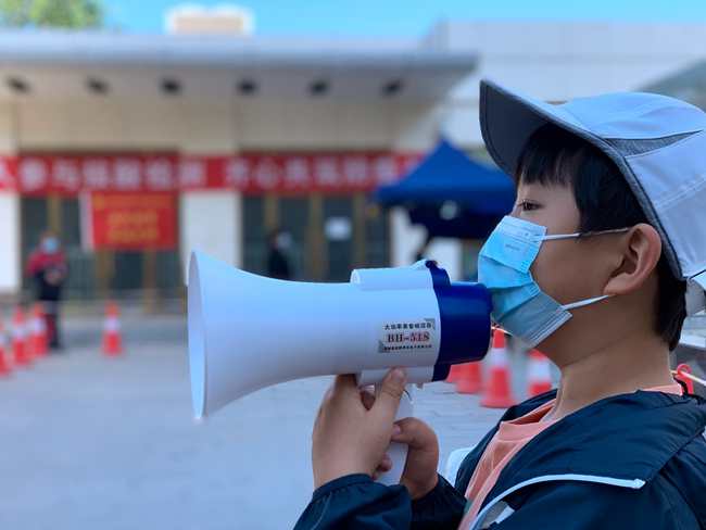 Shang Kaijie, a seven-and-half-year-old boy in Beijing’s Dongcheng district has played his part in efforts to organize his neighbors to take part in nucleic acid testing by using a loudspeaker to remind them to do so. A nursery rhyme chanted by the boy was repeatedly broadcast via a loudspeaker to remind residents to take part in nucleic acid testing.
