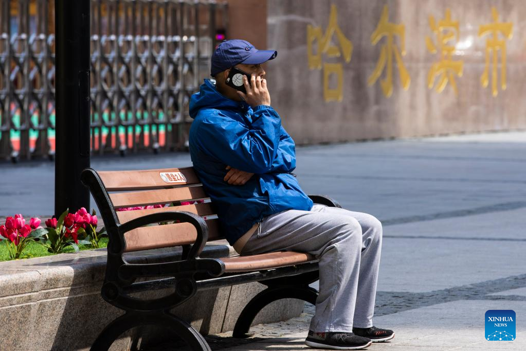 Citizens are seen at a park in Harbin, northeast China's Heilongjiang Province, May 11, 2022. Harbin started to resume normal life and production in an orderly manner from Wednesday. (Xinhua/Zhang Tao)