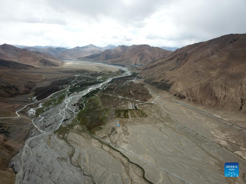 Aerial photo taken on May 11, 2022 shows wetland in the Qomolangma National Nature Reserve in Zhaxizom Township in Tingri County, southwest China's Tibet Autonomous Region. (Xinhua/Jiang Fan)