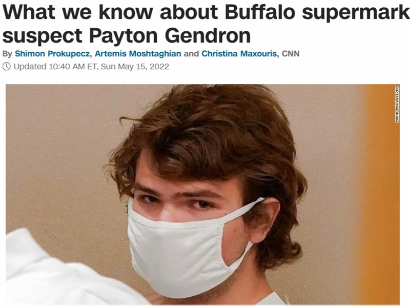 The screenshot of CNN's report updated on May 15, 2022 shows Payton Gendron, the 18-year-old U.S. white man who shocked the nation on Saturday by live-streaming his mass shooting at a supermarket in the city of Buffalo, New York, staring into the camera. (Xinhua)