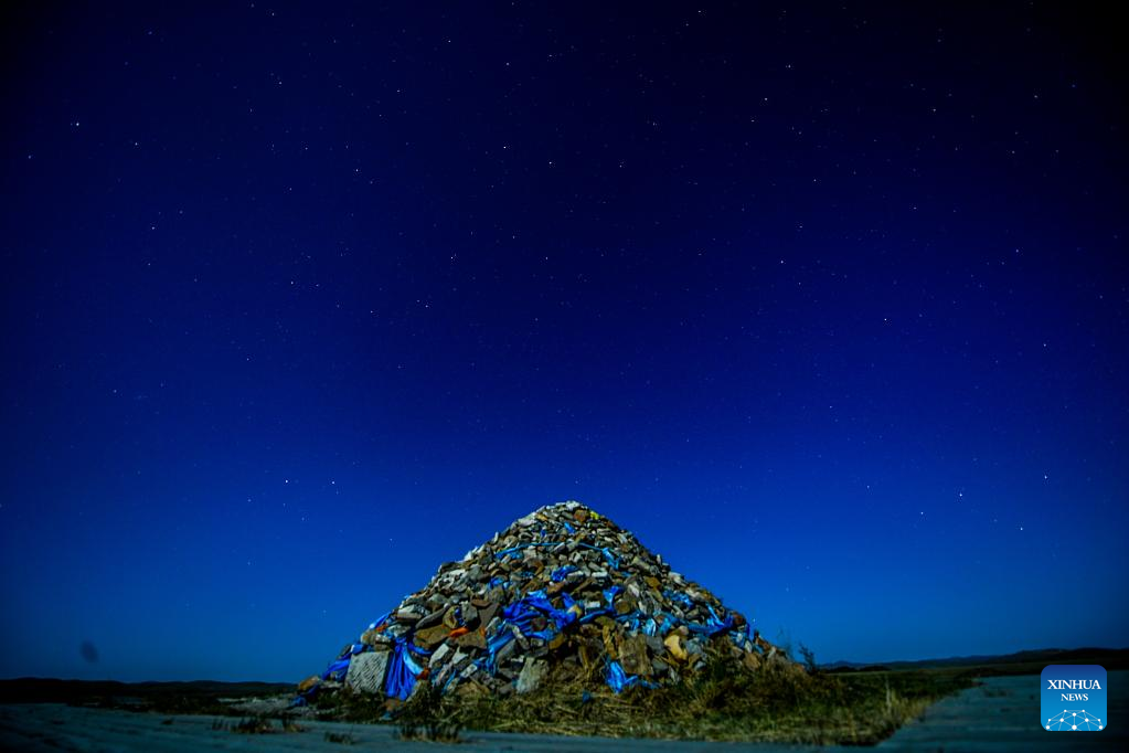 Photo taken on May 14, 2022 shows the site of Xanadu under the starry sky in Zhenglan Banner of Xilingol League, north China's Inner Mongolia Autonomous Region. Xanadu was one of the two major capitals during the Yuan dynasty nearly 800 years ago. The Xanadu site was inscribed on the World Heritage List in 2012. (Xinhua/Peng Yuan)