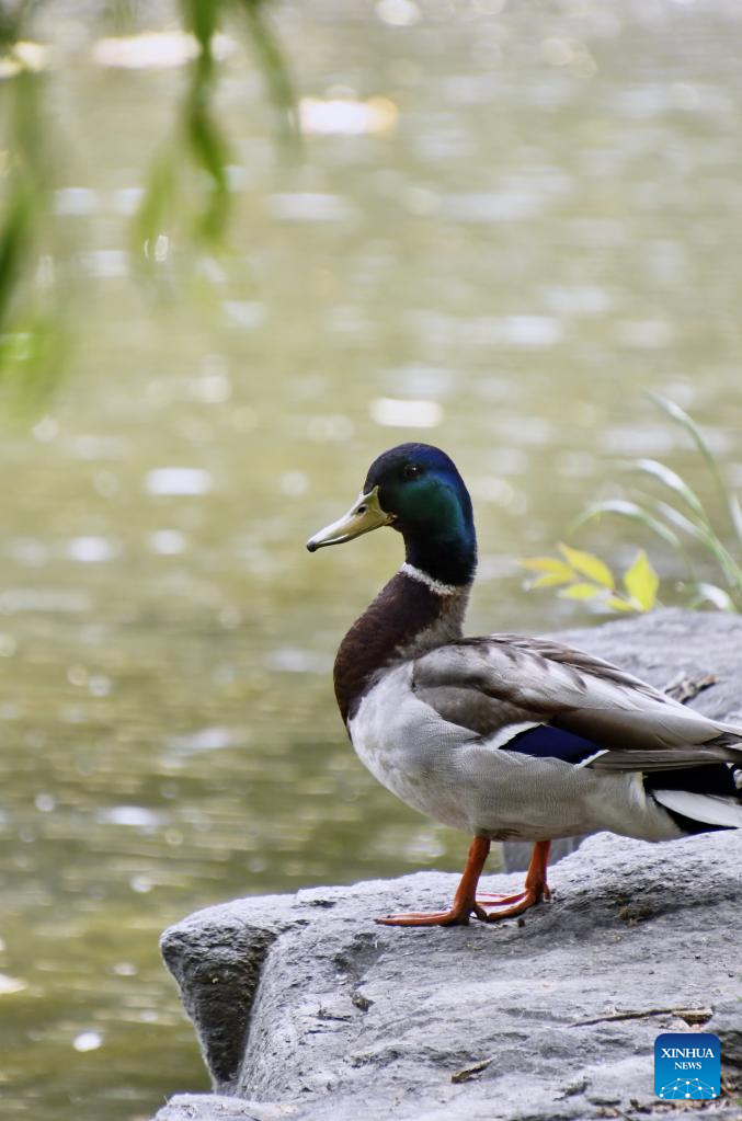 Wild ducks swim in the lake in Yuanmingyuan Park in Beijing, capital of China, May 15, 2022. (Xinhua/Li Xin)