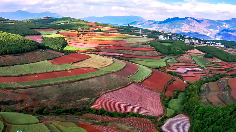 The highland barley fields and reddish-hued soil become interlaced in Dongchuan Red Land in the Hongtudi Township of Kunming, capital of southwest China's Yunnan Province. (Photo/Zhang Mu)