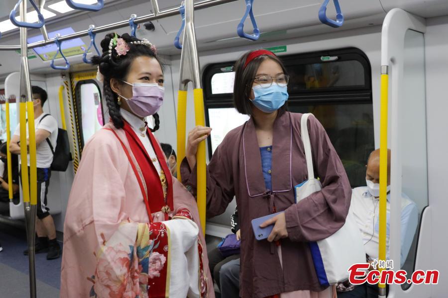 Passengers get on the first special train of the East Rail Line cross-harbor extension in the Hong Kong Special Administrative Region, May 15, 2022. (Photo: China News Service/Chen Yongnuo)