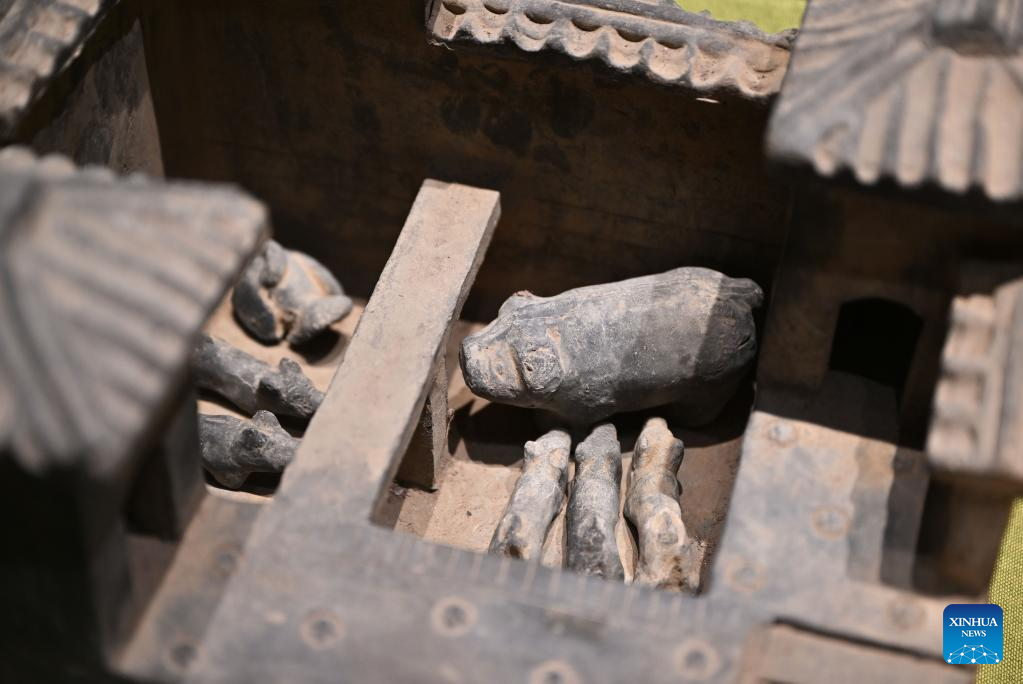 A pigpen-shaped pottery of the Han Dynasty (202 BC-220 AD) is exhibited at Hainan Museum in Haikou, south China's Hainan Province, May 18, 2022.