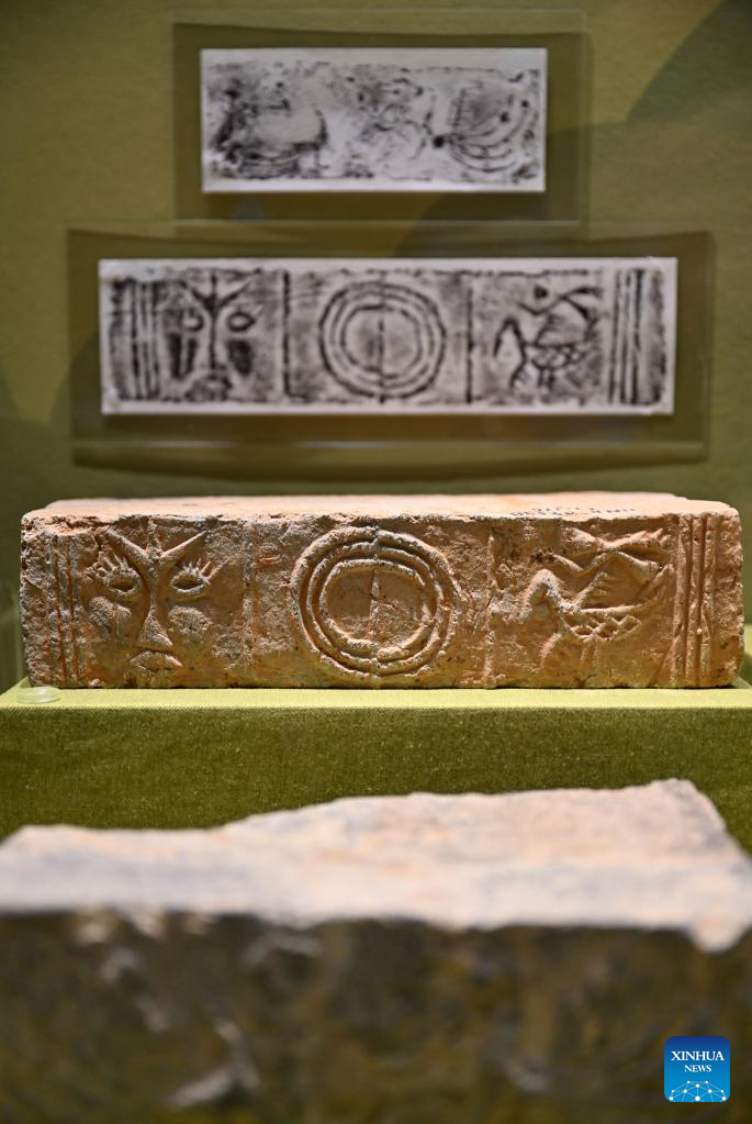 Bird patterned bricks of the Eastern Han Dynasty (25-220) are exhibited at Hainan Museum in Haikou, south China's Hainan Province, May 18, 2022.