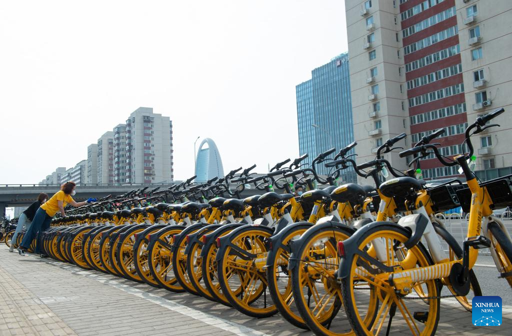 In Beijing, shared bikes have been disinfected and some of them are equipped with hand sanitizers recently as COVID-19 precaution measures, for the sake of the riders' health amid the recent COVID-19 resurgence. (Xinhua/Chen Zhonghao)