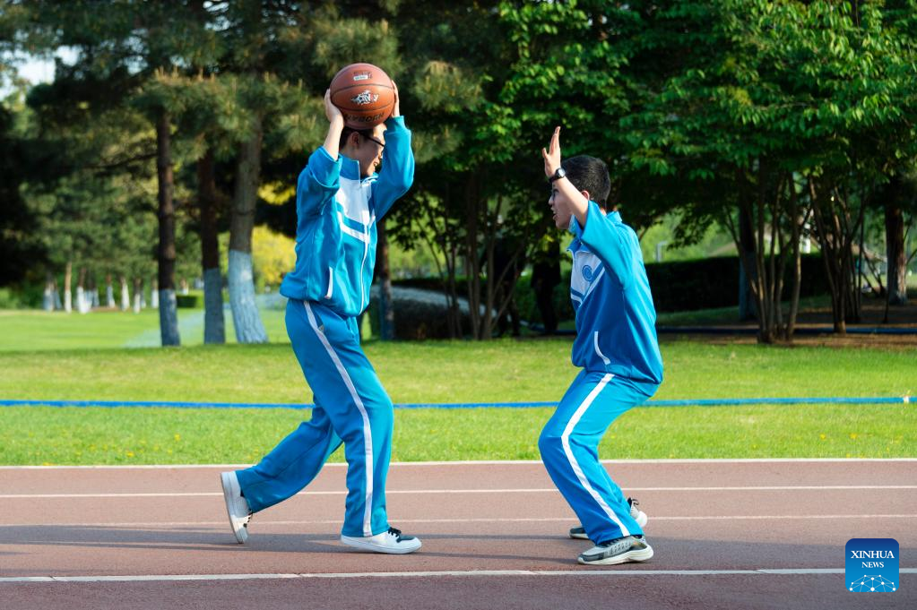 People play basketball at a park in Xiangfang District of Harbin, northeast China's Heilongjiang Province, May 19, 2022. Normal life in Harbin has gradually resumed as the latest COVID-19 resurgence waned. (Xinhua/Xie Jianfei)