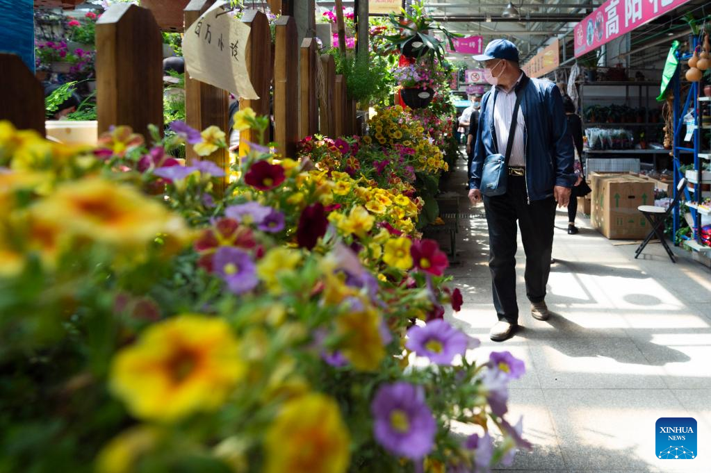 A man shops at a flower market in Harbin, northeast China's Heilongjiang Province, May 18, 2022. Normal life in Harbin has gradually resumed as the latest COVID-19 resurgence waned. (Xinhua/Xie Jianfei)