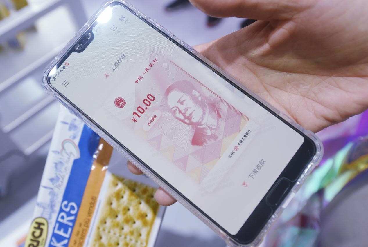 A visitor tries paying with e-CNY at the 2021 World Artificial Intelligence Conference, July 7, 2021. (People’s Daily Online/Long Wei)