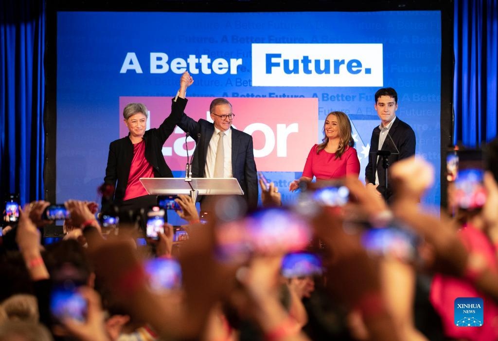 Anthony Albanese reacts after winning Australia's 2022 federal election in Sydney, Australia, May 21, 2022. Anthony Albanese has claimed victory for his Labor Party after incumbent Prime Minister Scott Morrison conceded defeat in Australia's 2022 federal election held on Satuday. (Xinhua/Bai Xuefei)