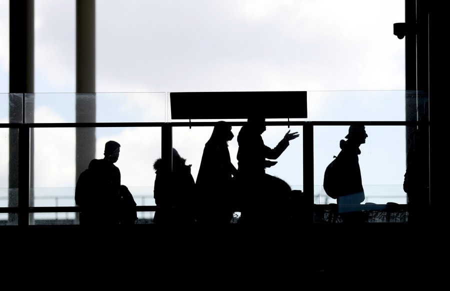 Passengers walk in Heathrow Airport in London, Britain, March 18, 2022. (Xinhua/Li Ying)