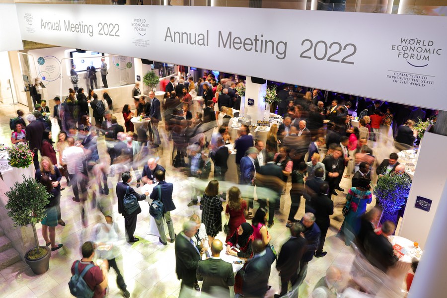 The sign of the World Economic Forum (WEF) is seen in Davos, Switzerland, May 22, 2022. The WEF 2022 Annual Meeting is held here from May 22 to 26. (Xinhua/Zheng Huansong)