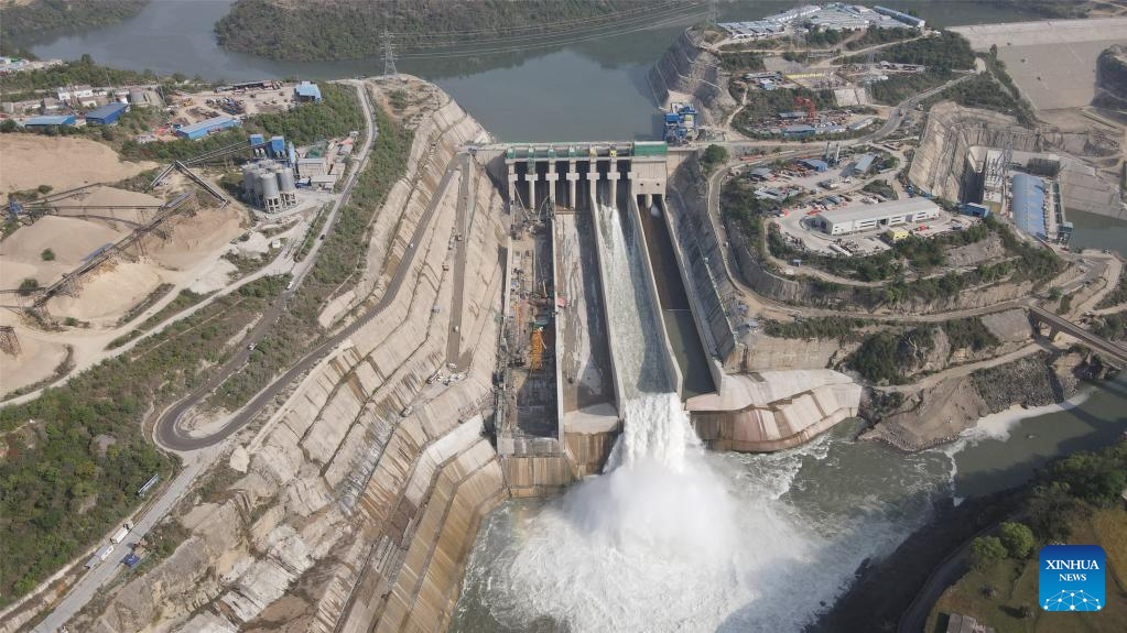 Aerial photo taken on April 9, 2022 shows a view of the Karot Hydropower Project in Punjab province, eastern Pakistan. Pakistani Prime Minister Shahbaz Sharif said on Wednesday that the Karot Hydropower Project, a major pilot project under the China-Pakistan Economic Corridor (CPEC), will generate environment-friendly and cheap electricity, promoting green development in Pakistan. (CTG/Handout via Xinhua)