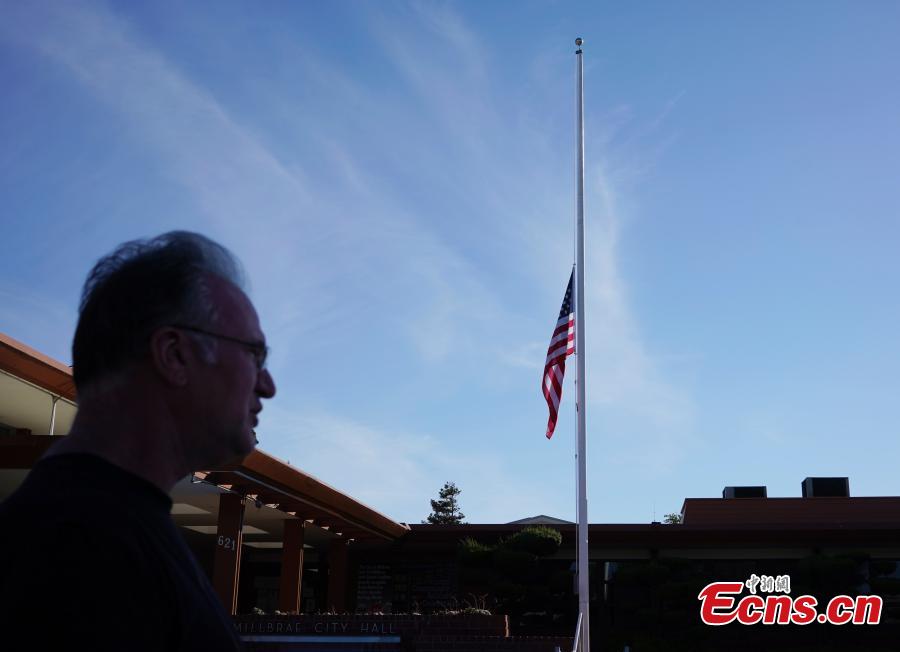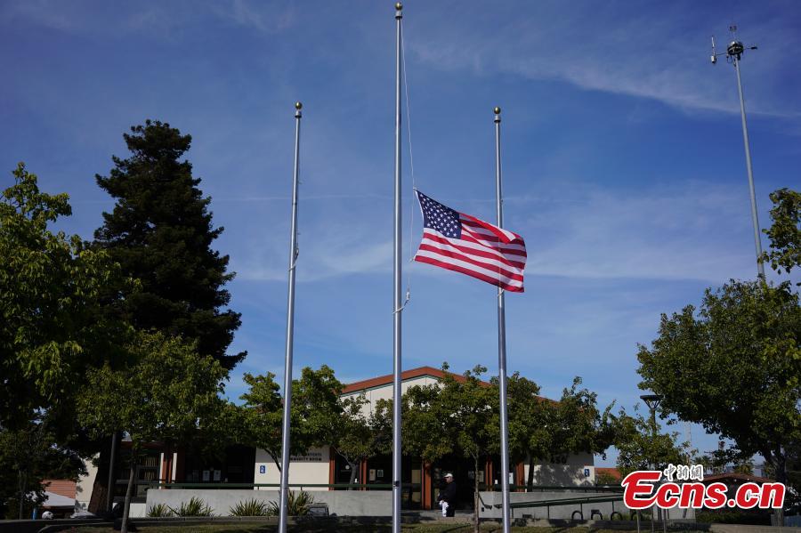 U.S. national flag flies at half-staff outside the City Hall of Millbrae, California, after a gunman in Texas killed at least 19 children and two adults at Robb Elementary School, U.S., May 25, 2022. (Photo: China News Service/Liu Guanguan)