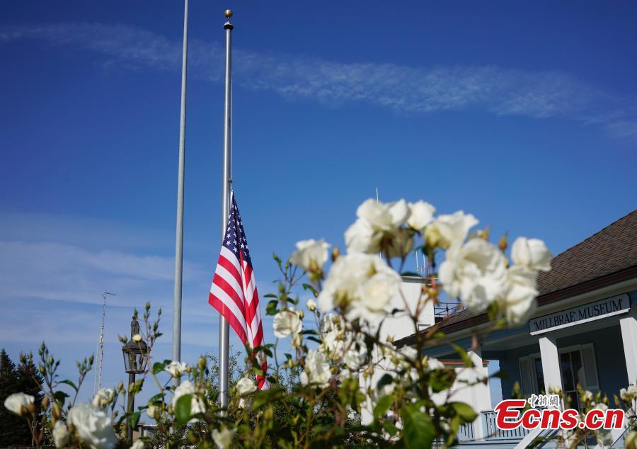 U.S. national flag flies at half-staff at the Millbrae Museum, California, after a gunman in Texas killed at least 19 children and two adults at Robb Elementary School, U.S., May 25, 2022. (Photo: China News Service/Liu Guanguan)
