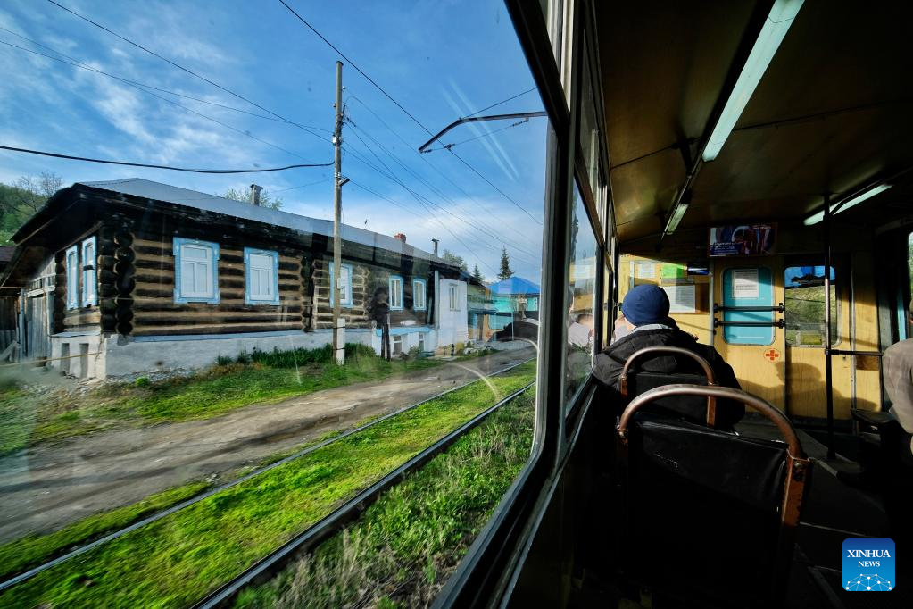 A passenger looks out from a tram in Zlatoust, Chelyabinsk region, Russia, on May 26, 2022. (Photo by Evgeny Andreev/Xinhua)