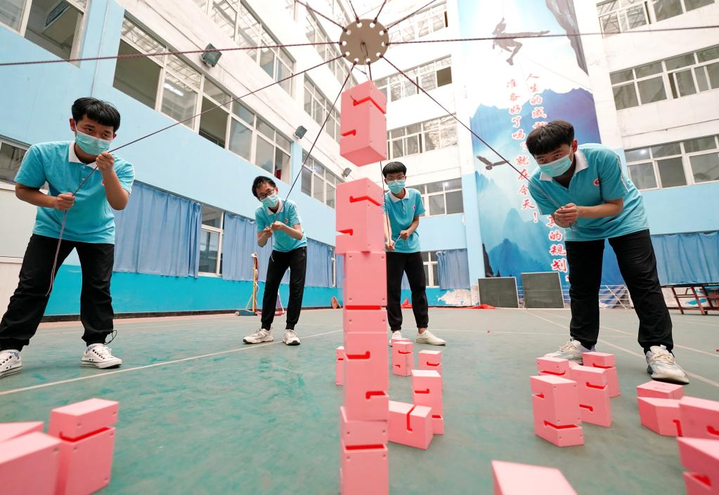 China's national college entrance exam for 2022, also known as Gaokao, will be held on June 7 and 8. With COVID-19 control measures put in place, schools in Hebei Province have organized various activities to help students relax and stay in their best shape for the approaching examination. (Photo by Zhang Xiaofeng/Xinhua)
