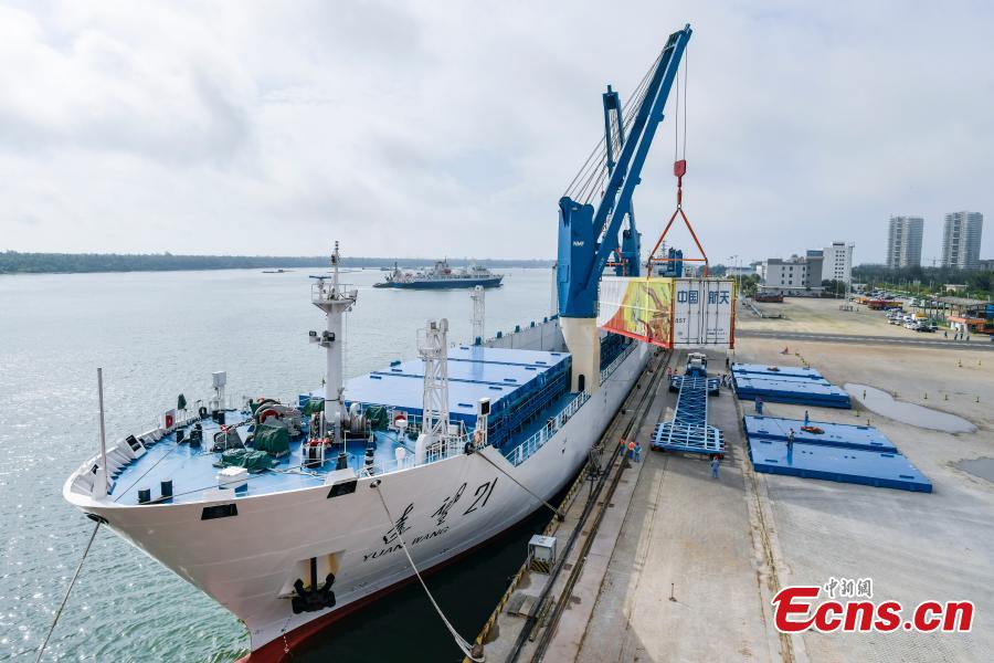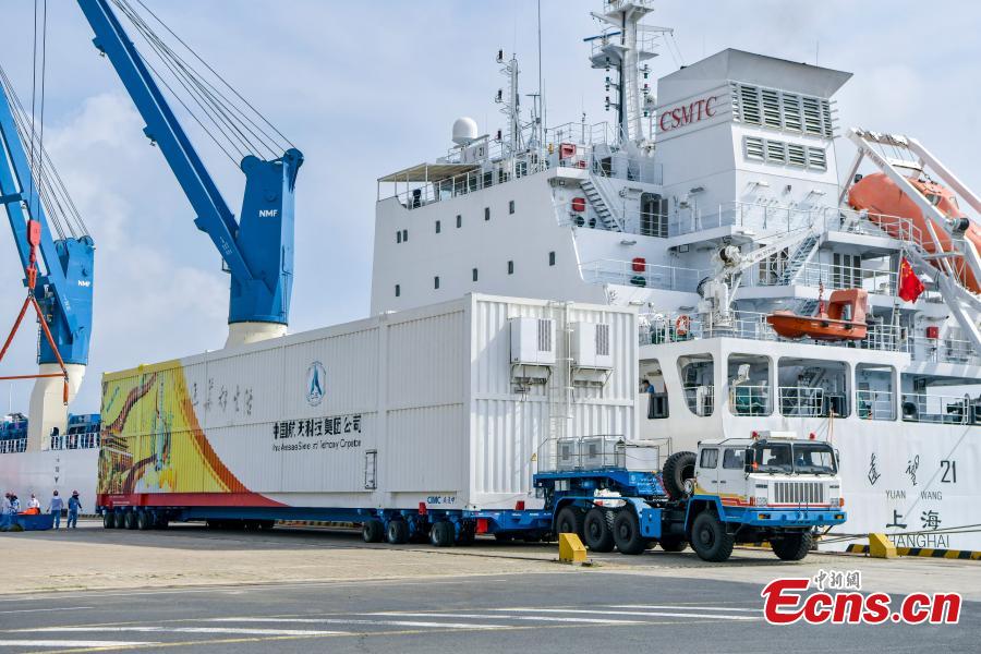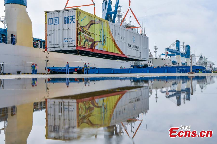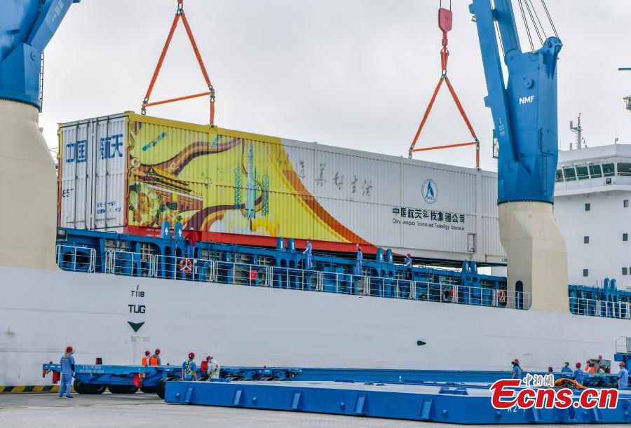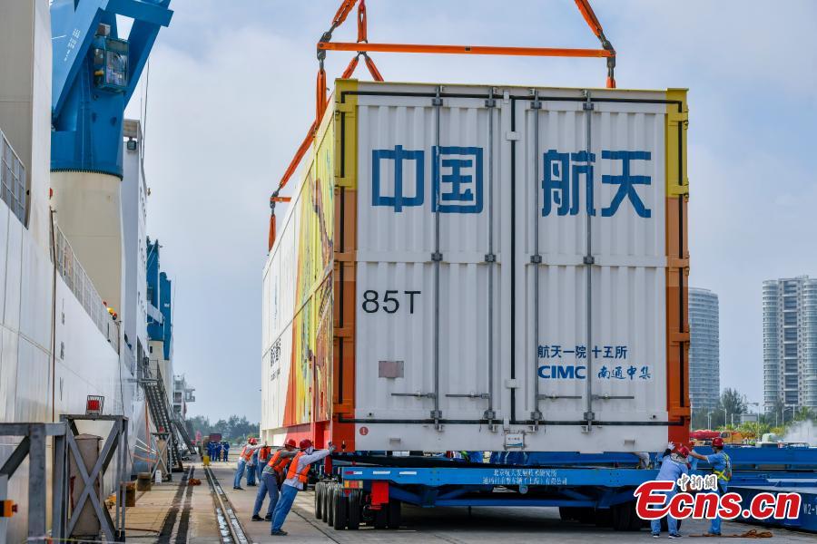 The Long March 5B carrier rocket is transported to the Wenchang Space Launch Center, south China's Hainan Province, May 29, 2022. (Photo: China News Servie/Luo Yunfei)