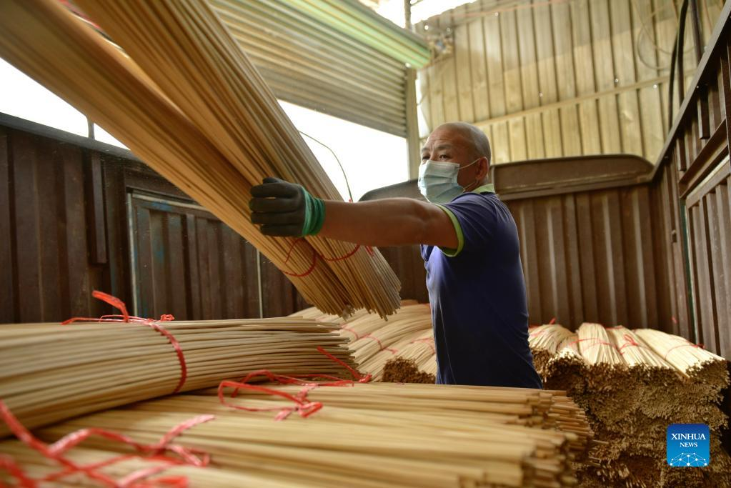 A worker works in the workshop of Guiyuan Bamboo &Wood Factory in Chongyi County of Ganzhou, east China's Jiangxi Province, May 17, 2022. Chongyi, boasting over 48,900 hectares of bamboo forests in the city of Ganzhou, is a major bamboo growing area in China, yielding more than 10 million bamboos for commercial use each year. (Xinhua)