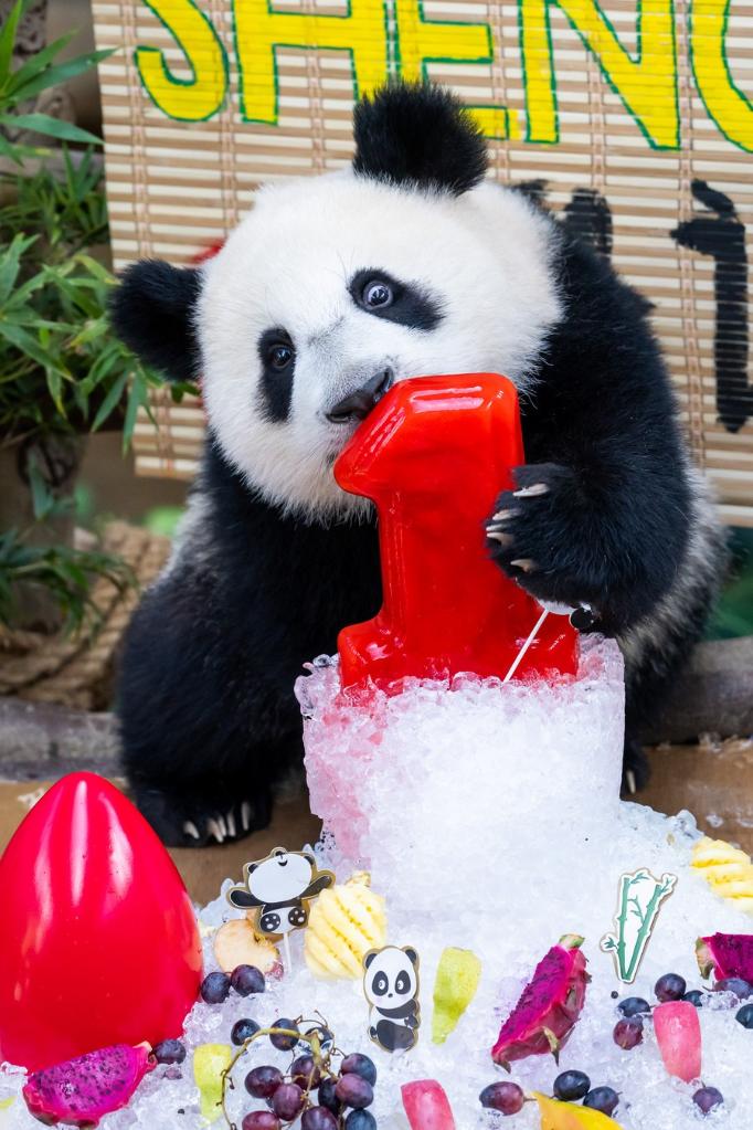 Giant panda cub Sheng Yi celebrates its first birthday at the Giant Panda Conservation Center of Zoo Negara near Kuala Lumpur, Malaysia, May 31, 2022. (Xinhua/Zhu Wei)