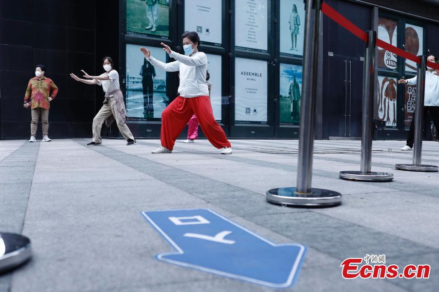 Residents exercise in the morning at Nanjing Road, Shanghai, Jun. 1, 2022. (Photo: China News Service/Tang Yanjun)