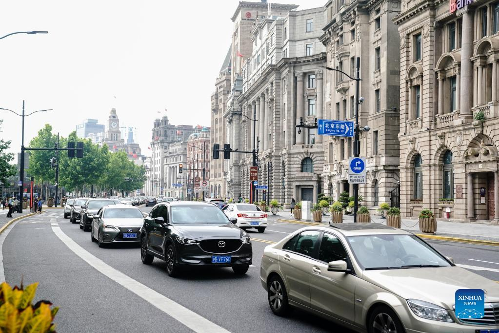 Cars run on a road at the Bund area in east China's Shanghai, June 1, 2022. (Xinhua/Ding Ting)