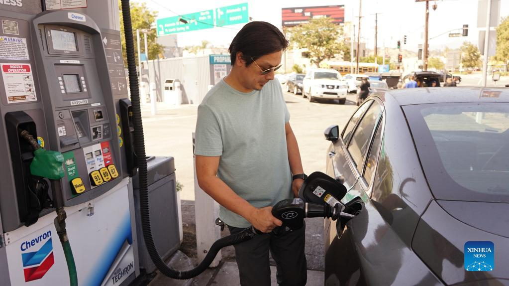 A man fuels his vehicle at a gas station in Los Angeles, California, the United States, June 1, 2022. The national average price of regular unleaded gas in the United States soared to a record high of 4.67 U.S. dollars per gallon Wednesday and a further rise is widely expected over the coming months. (Photo by Zeng Hui/Xinhua)