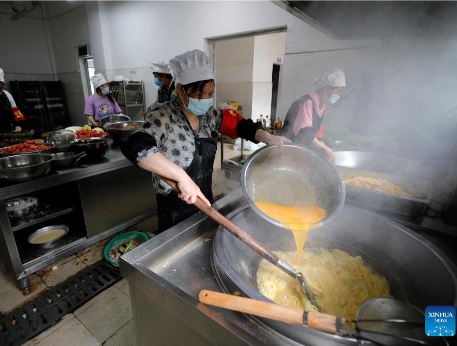 Chefs prepare lunch at a temporary shelter in Taiping Town of Lushan County, southwest China's Sichuan Province, June 2, 2022.