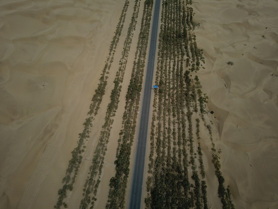 However, it was no easy task to build and maintain a road in the Taklimakan, the world's second-largest shifting-sand desert. In 2005, a 436-km-long shelterbelt was planted on both sides of the road to protect it from being swallowed up by sand, and 109 well stations were built for irrigation.