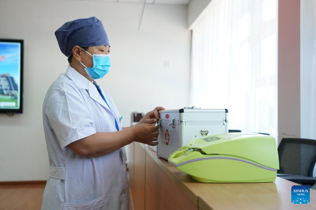 A medical worker prepares medical supplies at an exam site of the upcoming national college entrance exam for 2022 in Beijing, capital of China, June 5, 2022.