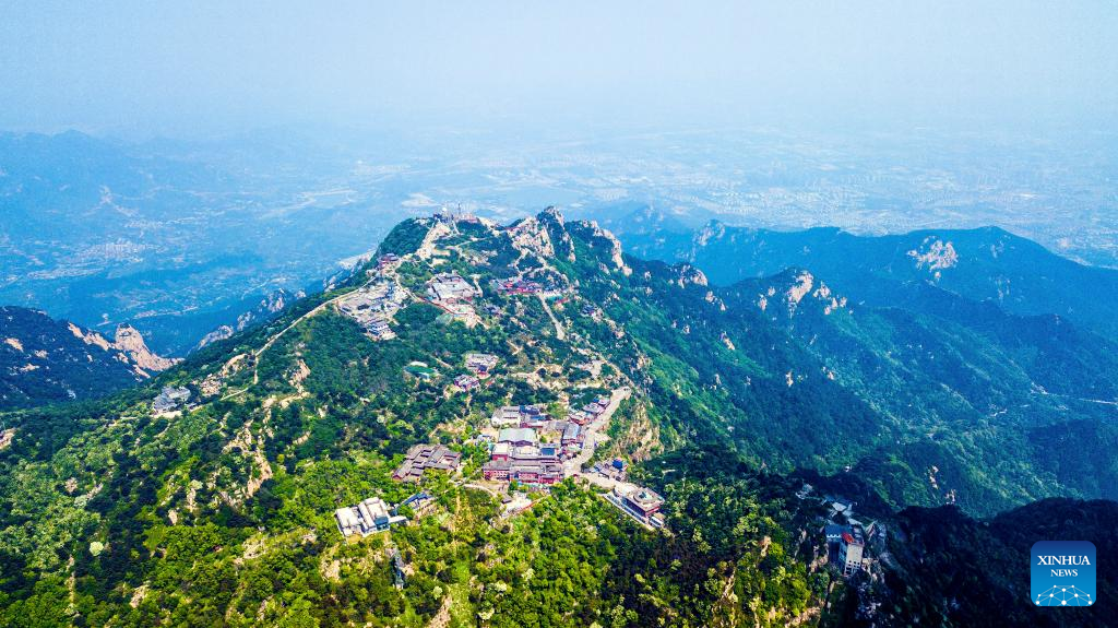 Aerial photo taken on May 24, 2022 shows the scenery of Mount Taishan in east China's Shandong Province. (Xinhua/Guo Xulei)