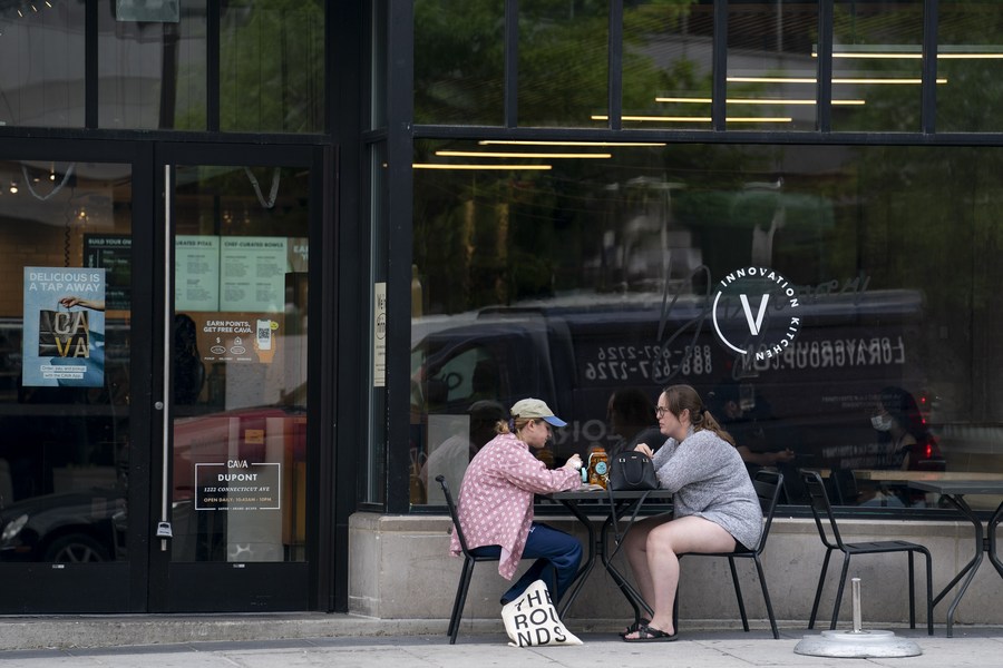 People spend time outside a restaurant in Washington, D.C., the United States, on May 11, 2022. (Xinhua/Liu Jie)