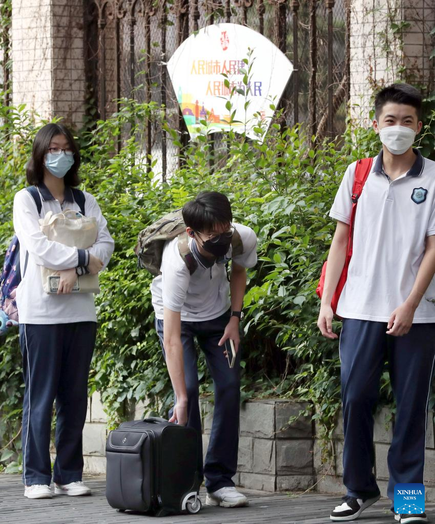 Students return to Shanghai Dajing High School affiliated to Shanghai International Studies University (SISU) in Shanghai, east China, June 6, 2022.