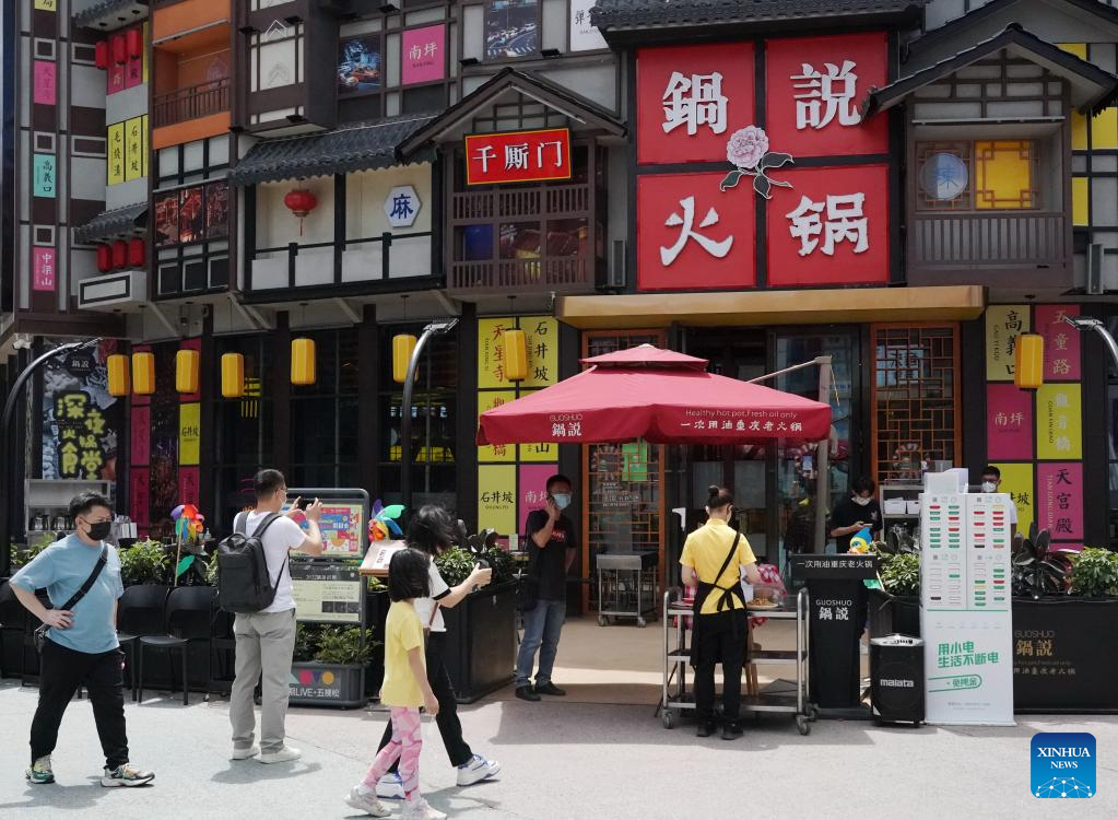 People walk in Huaxi Live shopping plaza in Haidian District of Beijing, capital of China, June 6, 2022.