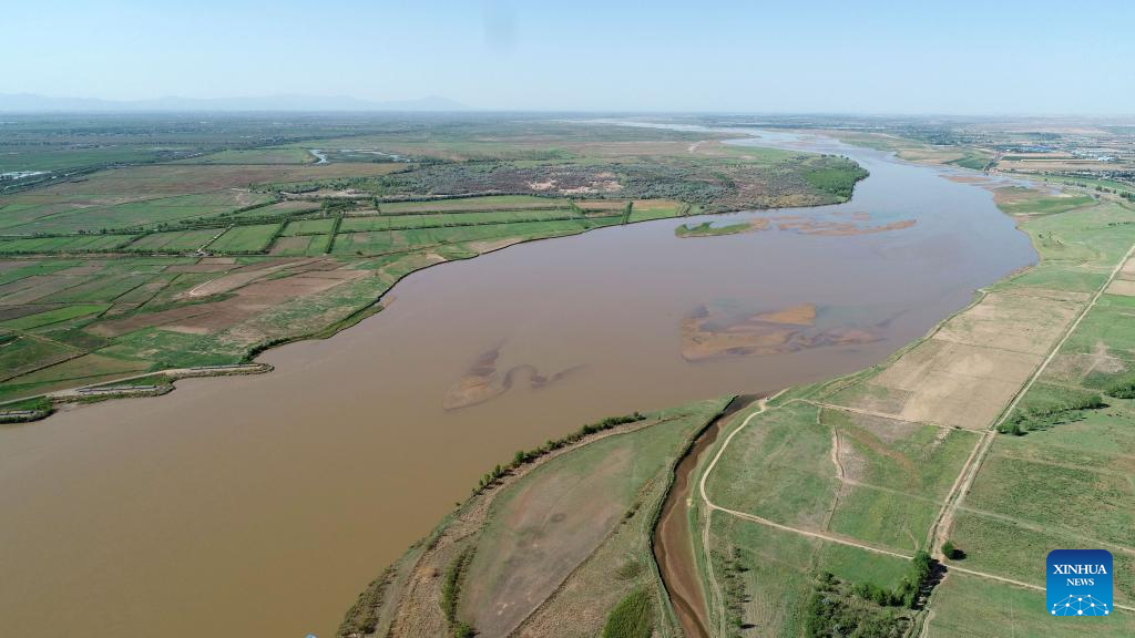 Aerial photo taken on June 5, 2022 shows fields along the banks of the Yellow River in northwest China's Ningxia Hui Autonomous Region. (Xinhua/Wang Peng)