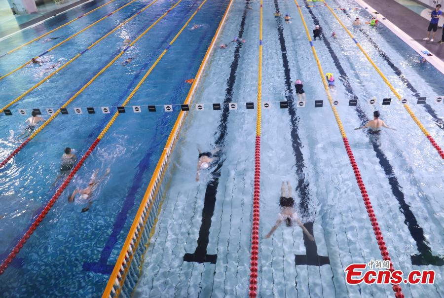 People swims at a gym in Daxing district, Beijing, June 6, 2022. (Photo: China News Service/Zhao Jun)
