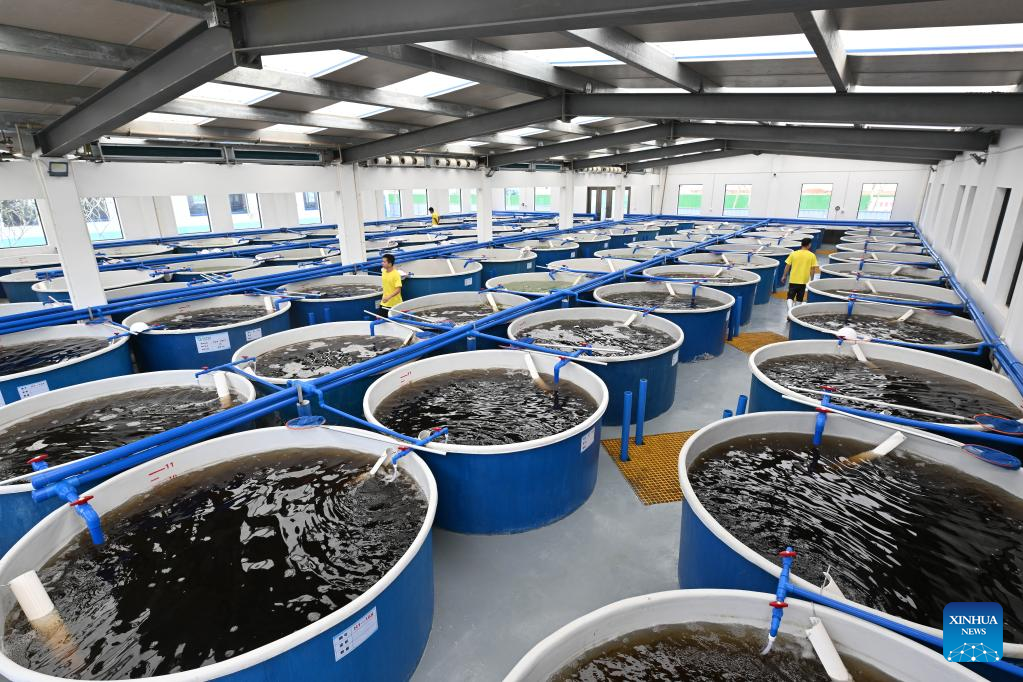 HAIKOU, June 8 (Xinhua) -- Zeng Guangneng, a fish farmer in Wenchang, a city in south China's island province of Hainan, has experienced several major life changes. His grandfather was a sea fisherman, his father bred fish on the shore, and now he moved fish ponds into a building.