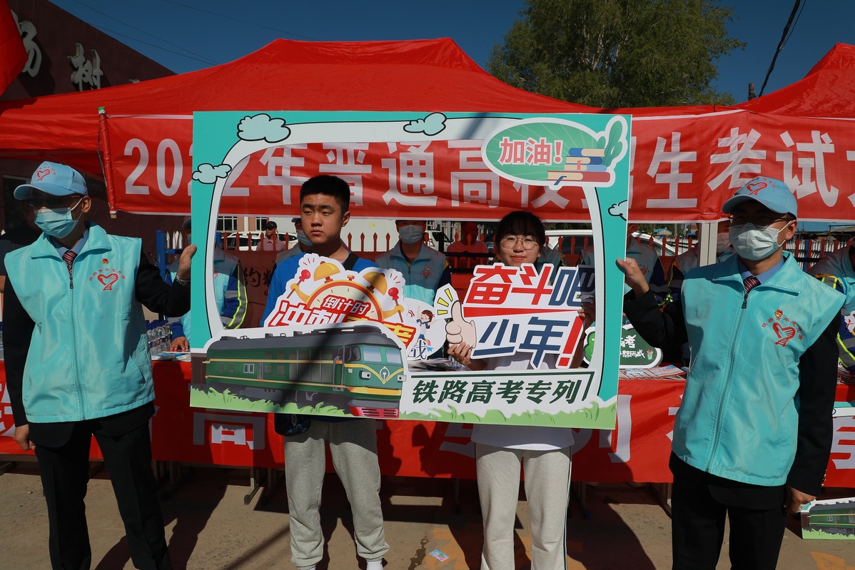 To commemorate the special trains of the past, staff members from Dayangshu Railway Station came to the school and distributed bottled water, stationery, commemorative albums and souvenir tickets to students heading inside for their tests.