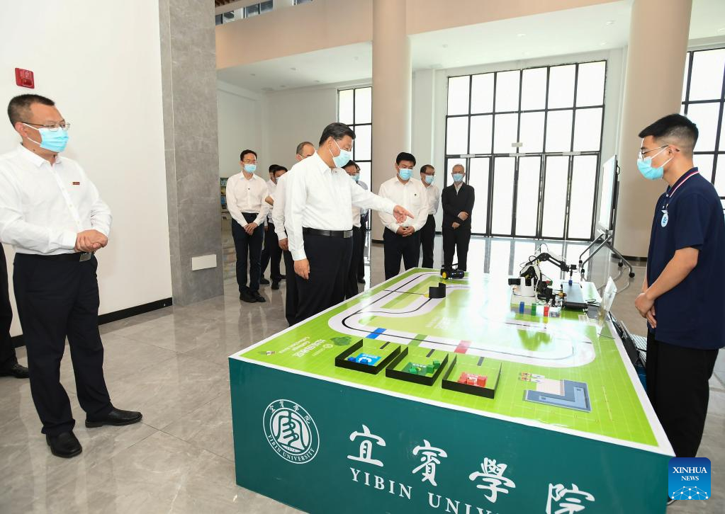 Chinese President Xi Jinping, also general secretary of the Communist Party of China Central Committee and chairman of the Central Military Commission, visits Yibin University in Yibin, southwest China's Sichuan Province, June 8, 2022. Xi made an inspection tour of southwest China's Sichuan Province on Wednesday. (Xinhua/Xie Huanchi)